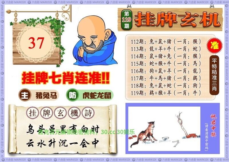 119期港彩关门联:三回四顾看不清,狗龙鸡羊是特码。解 [三] [8472]